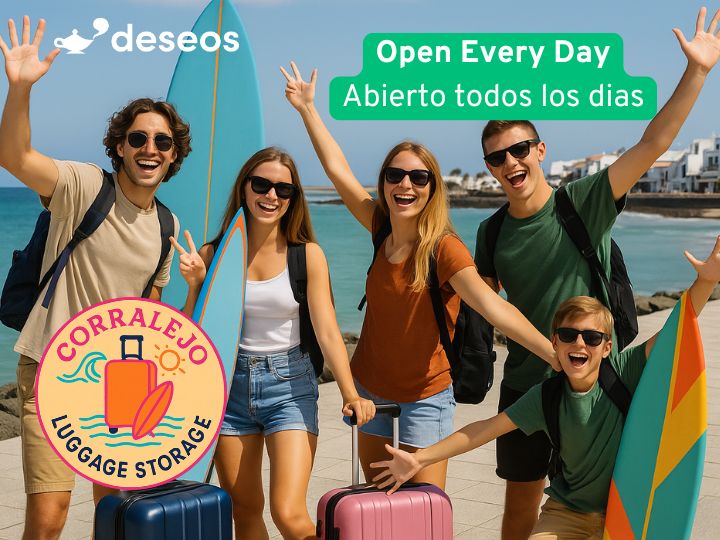 Whether you’re heading to Lobos Island, catching a ferry to Lanzarote, or simply want to enjoy Corralejo hands-free, Corralejo Luggage Storage at Deseos Supermercado is your most affordable, secure, and trusted choice.