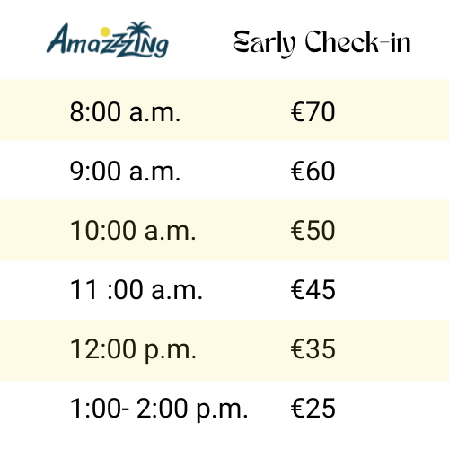 At Amazzzing Travel, we prioritize your satisfaction and convenience, and our Early Check-In service is designed to add more value to your holiday. Don’t miss the opportunity to start your adventure a little earlier and make the most of every moment at your chosen destination.